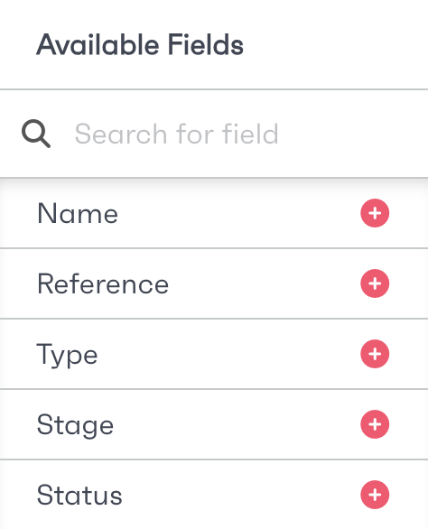 Adding a new column will allow you to report on additional data points from within the workflow. To add a new column to a report, click on the field from the available options in the menu to the left of the page. Once the field has been added, you will be able to customise the name and if the field is hidden or not.