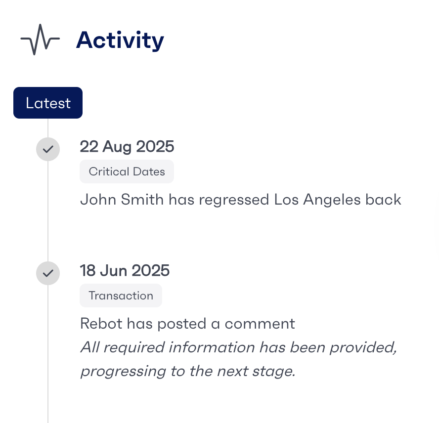 Programmes also come with a dashboard available, which allows users to view a summary of all currently active workflows and their statuses, and additional information such as the recent activity performed on a workflow. The fields that are shown throughout a programme menu are based on the existing templates that are available.