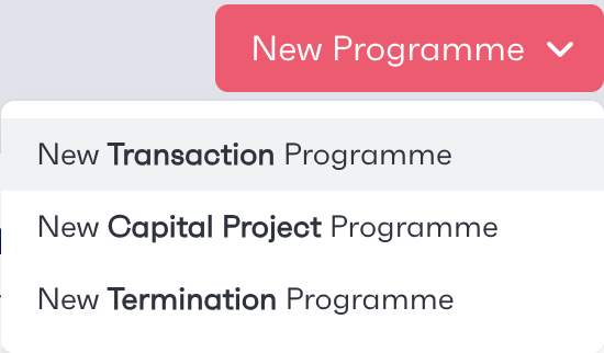 To start a new programme, first navigate to ‘Programmes’ from the list on the left hand menu. At the top right of the page is a ‘New Programme’ button.
